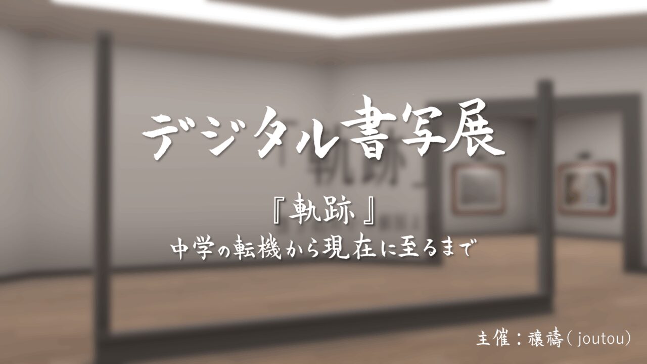 | ワールドの説明: 字書人・禳禱(ジョウトウ)による作品展示ワールド になります。 ひたむきに重ねた練習の軌跡と、一文字一文字に込めた想いを、ぜひ感じ取ってください。 禳禱(ジョウトウ) が字を書き始めたきっかけから現在に至るまでの軌跡を展示しています。 当時の心情や写真とともにどうして現在まで続けることができたのか、どのような挑戦につながったのかをご紹介いたします。 |