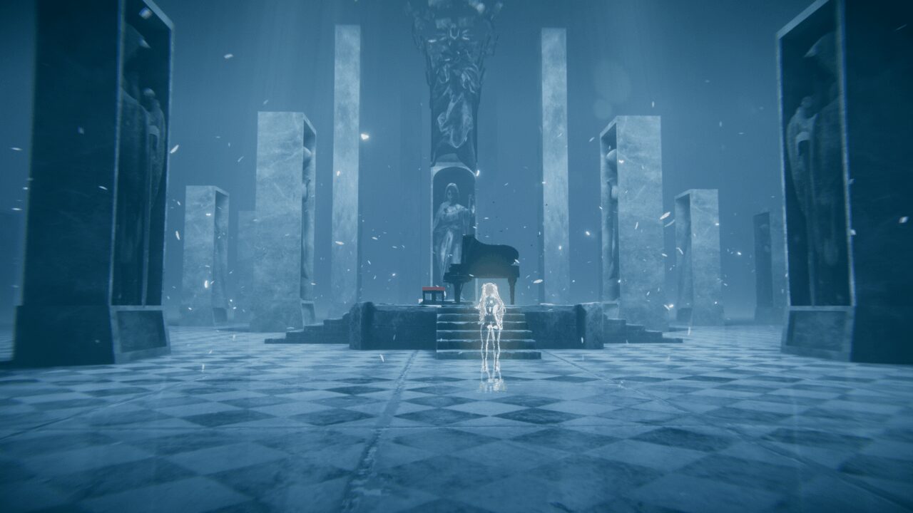 穴を抜けた先にある人とピアノが幻想的なワールドです