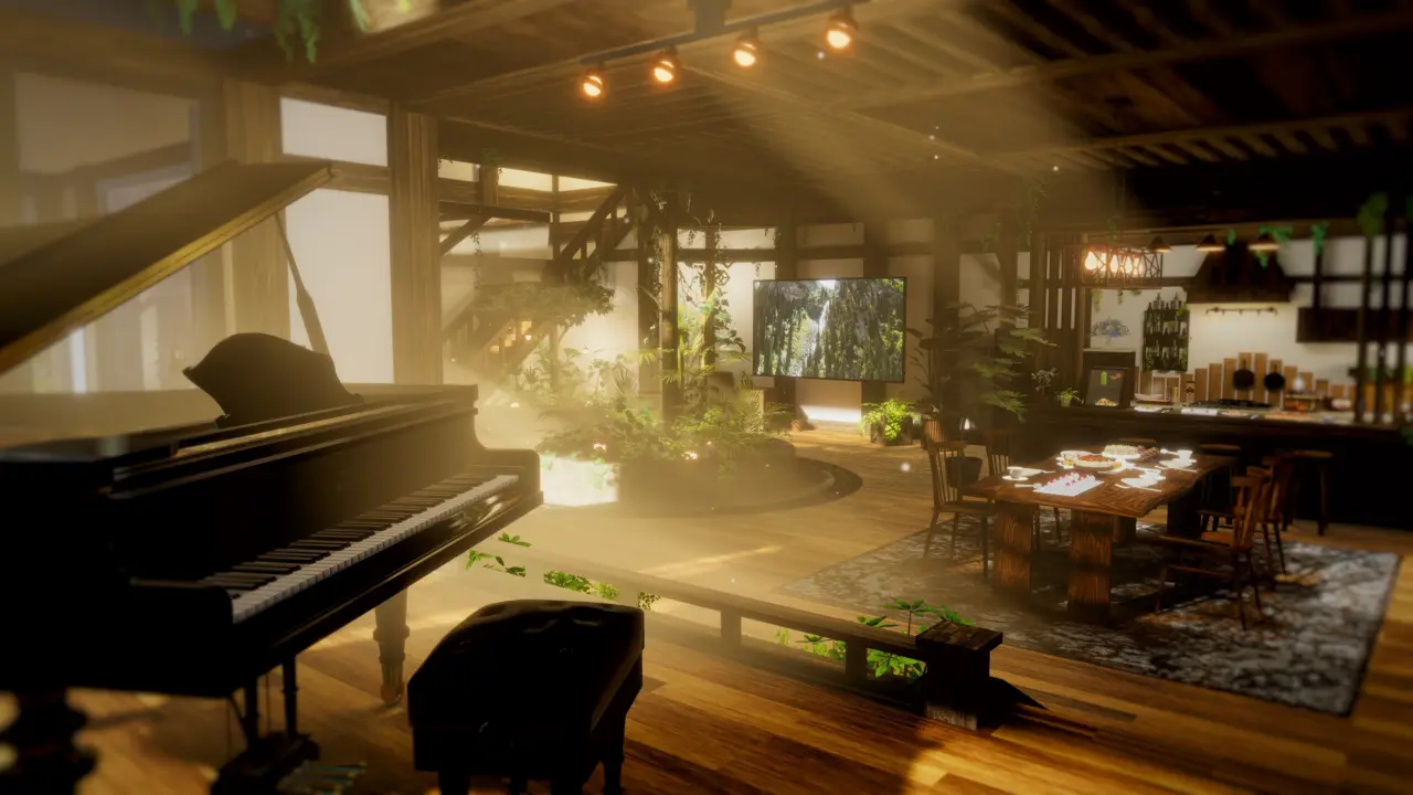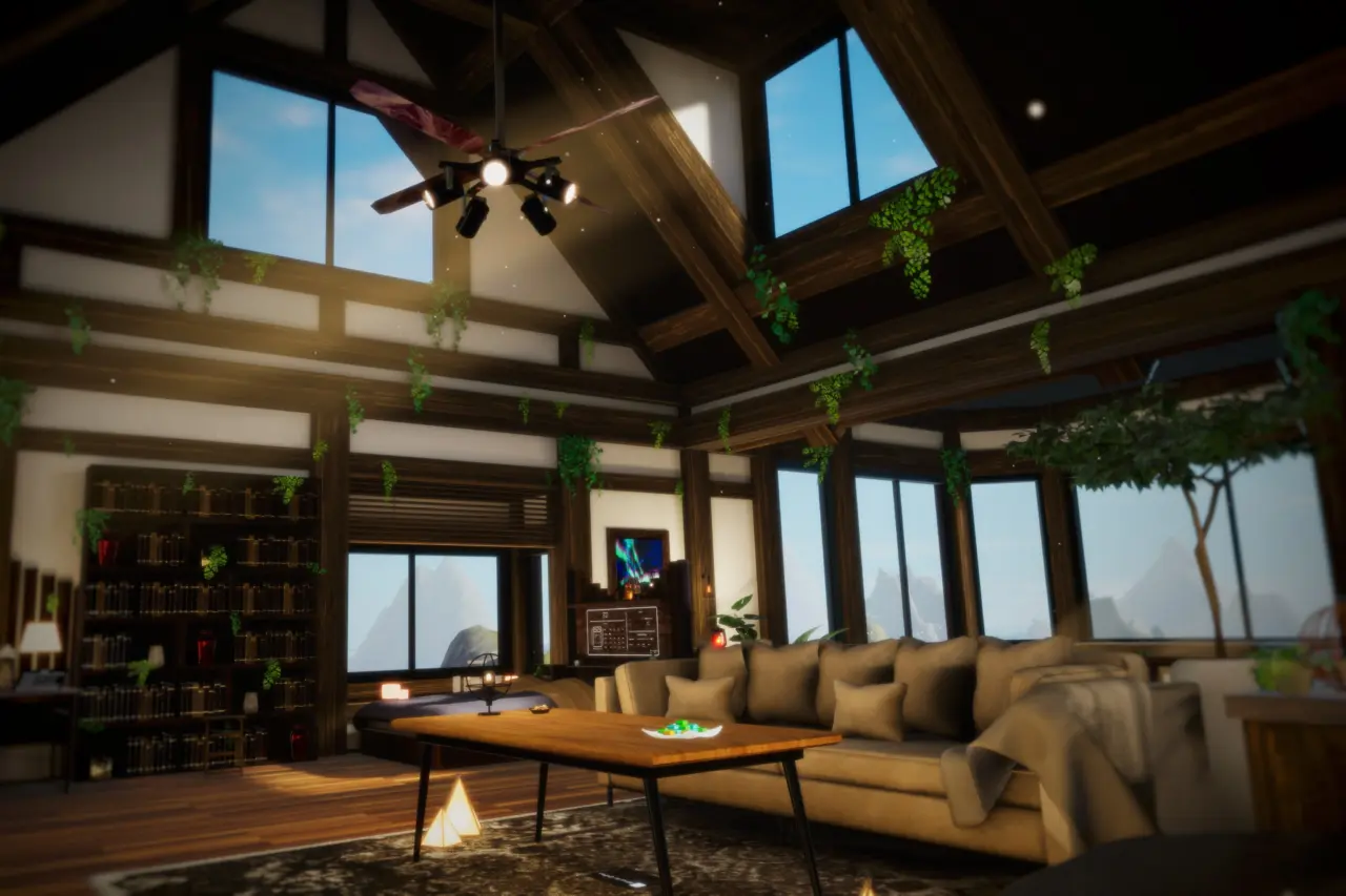 (VRC Light Volumes2․0․0対応) 雲海の上で植物に囲まれた穏やかな暮らしを。 1階にはカフェスペース、2階にはベッドと動画視聴用のソファ。外に庭もあります。入口横のスイッチで椅子のsit判定切替、軽量化のための各種エフェクト切替が可能。メニュー呼出はVR˸左トリガー2回⁄Desktop˸Eキー です。 —QvPen(メニューからも呼出可能)、イベントカレンダー(2階壁スイッチ)、筆談用ミラー(2階)、imagePad、YamaPlayer、Joinログ・通知、明るさ調整、アラーム、FlipCamera、各種食べ物など