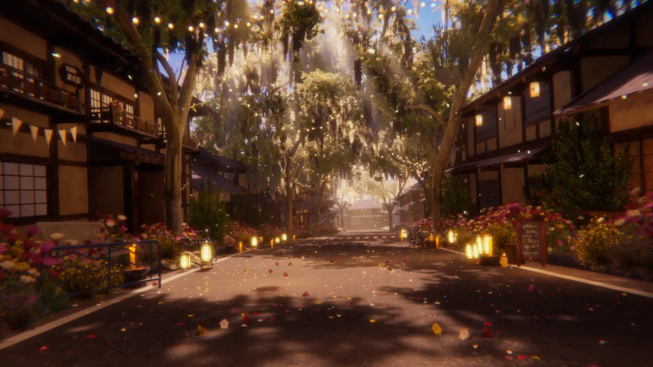 日本風な一本道のとても綺麗なワールド、木々の間から差し込む光が魅力となっている。