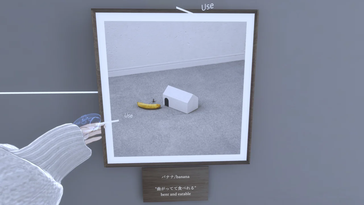 「繋がり方の街」と題して、いくつもの小部屋に作品が展示してあり、額縁をUseすると何かが動くようになっています。隠し要素もあるので探してみてください。