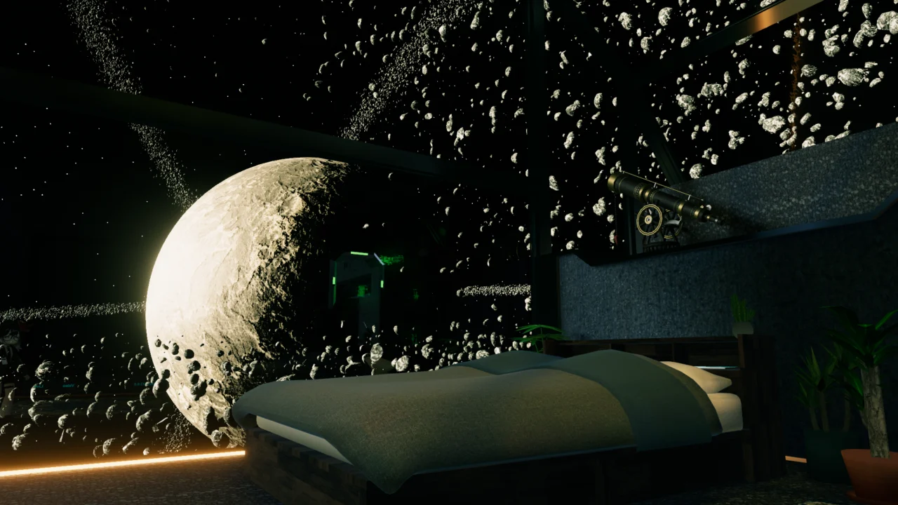 大量の小惑星が浮遊しているが動作がとても軽く、また設定でスタイルなどを変えることができる。