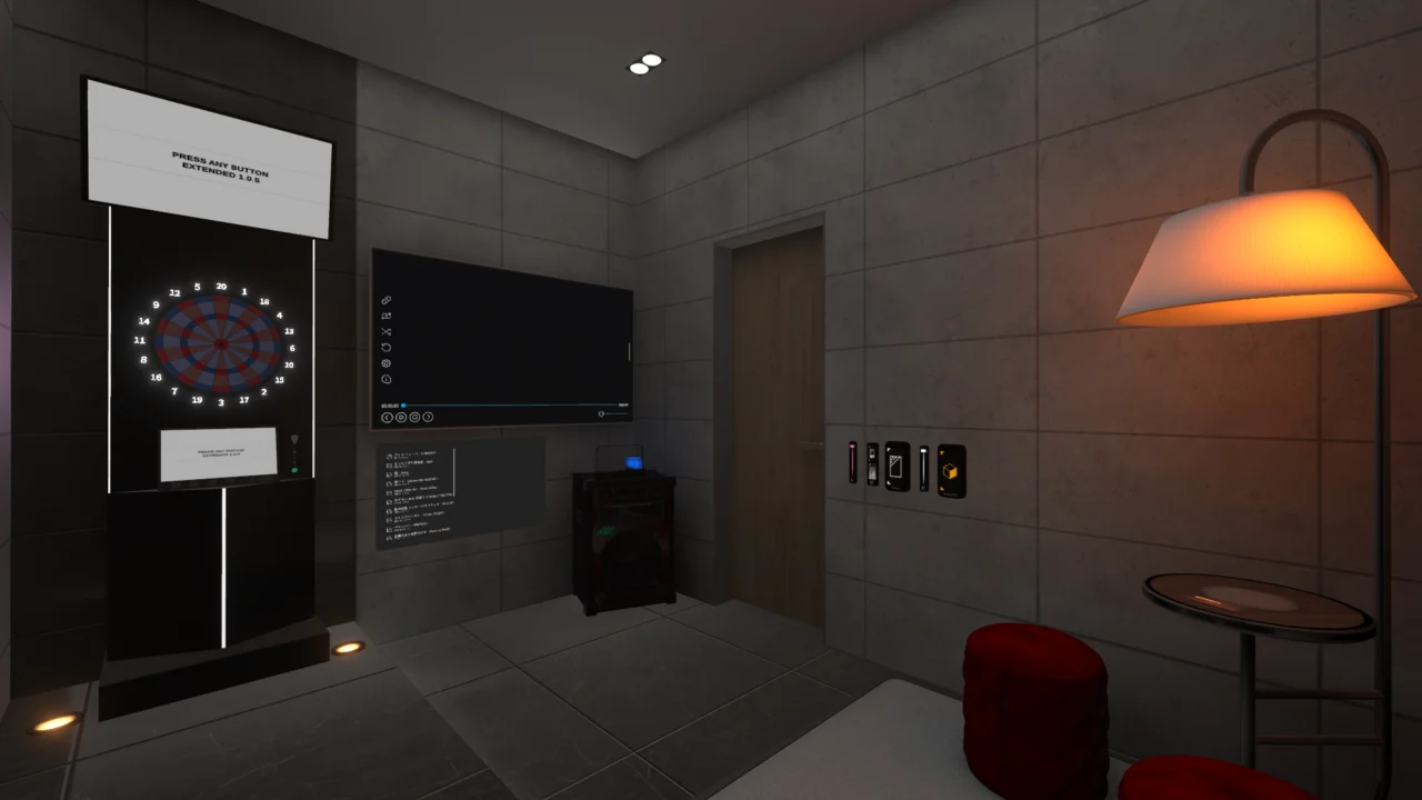 設備 ˸ QVPen ⁄ YamaPlayer ⁄ Darts ⁄ AozoraLibrary ⁄ ImagePad ⁄ NightMode ⁄ JoinLog ⁄ FlipCamera ⁄ VRCRoulette ⁄ VRChatイベントカレンダー ⁄ AvatarNow ⁄ Asovel ⁄ and more․