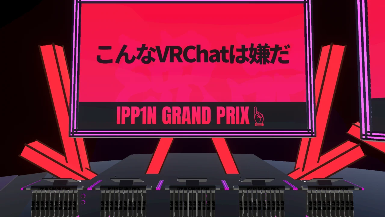 | ワールドの説明: IPPON形式の大喜利が行えるワールドです。2~30名で遊べます。PCVR、PCデスクトップ、Quest単騎、Android、iOSに対応しています。文字or画像で出題できます。プリセット問題も用意しました。チェアマン席はマネージャー席の後ろからいけます。ばーちゃるーぷ24で行われた1企画にて使用したものを公開しました。そのため、演出が配信に特化しています。元ネタ:IPPONグランプリ(フジテレビ) ハッシュタグ:#IPP1Nグランプリ #IPP1NGP |