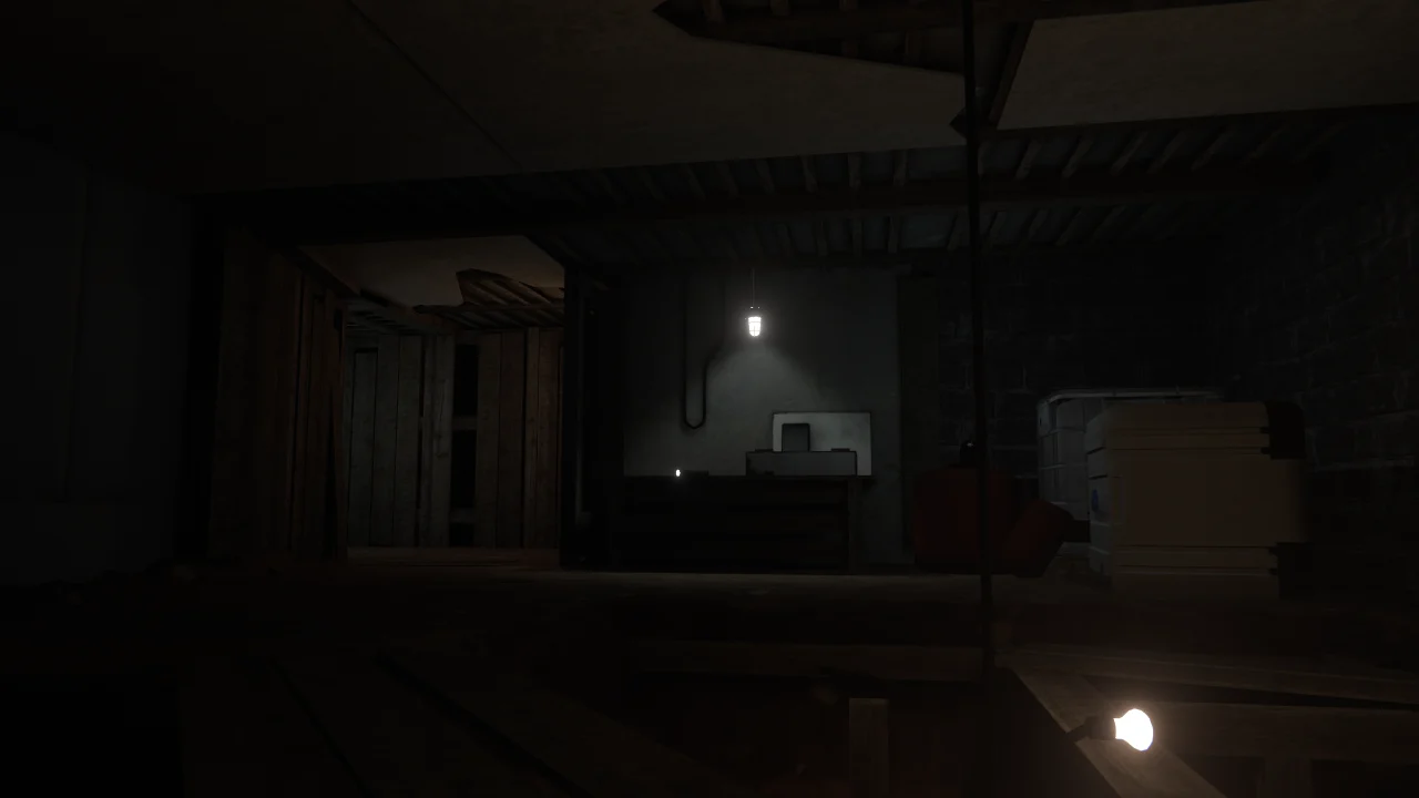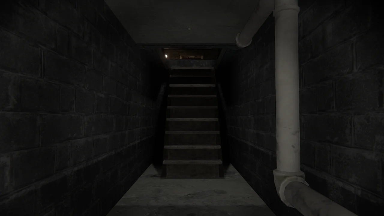 薄暗く、不気味な地下室を進むホラワ 時々、誰かの視線を感じますが気にせず前へ… 最後に響く音の演出がゾクッとくる!