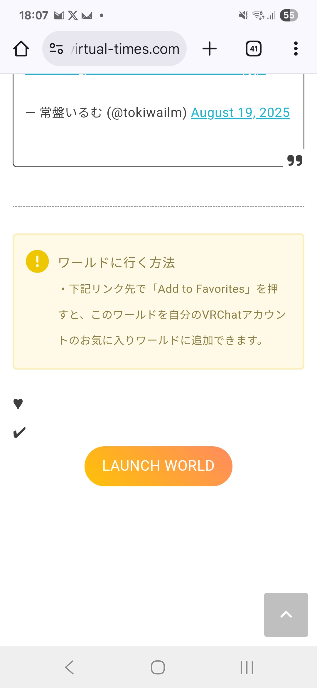 各ページのリンクからご自身のVRChatアカウントのFavoriteにワールドを追加することも可能です。